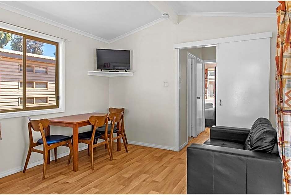 Open-plan 4-star accommodations featuring a kitchenette with portable cooktop, TV, heating, and cooling There are 2 single beds in the loft which is accessed by a ladder.